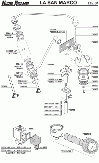 Spare parts for Coffee machines SAN MARCO to maintain or troubleshoot its model Serie 105 d - e - s. SAN MARCO ITALY SERIE 85 95 100 105 wwwlasanmarcoit. Tap handles and spare parts.